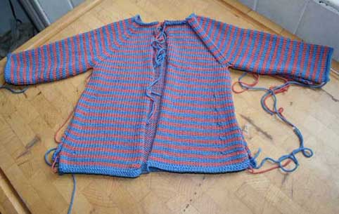 progress on the Debbie Bliss baby jacket. I’ve been working on it while out and about round Loch Lomond this weekend – – it will have an interesting collection of Scottish locations knitted into it. I enjoyed the yoke construction, and like the way the raglan shaping shows off the stripes.