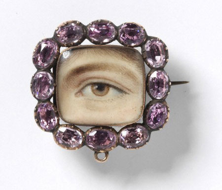 *See Hanneke Grootenboer, “Treasuring the Gaze: Eye-Miniature Portraits and the Intimacy of Vision” Art Bulletin (Sept, 2006). See also Marcia Pointon, “Surrounded With Brilliants: Miniature Portraits in Eighteenth Century England” Art Bulletin (March, 2001). The Philadelphia Museum of Art has an incredible — and quite spooky — collection of late eighteenth-century eye-miniatures.