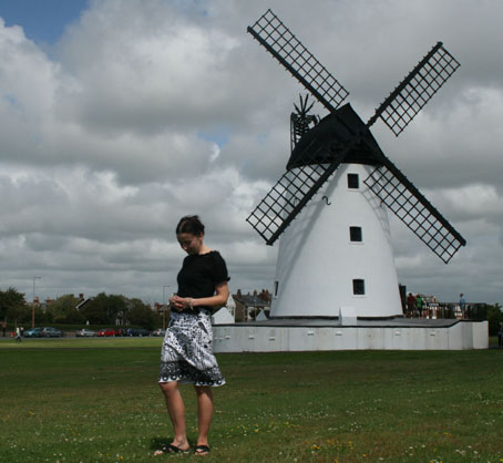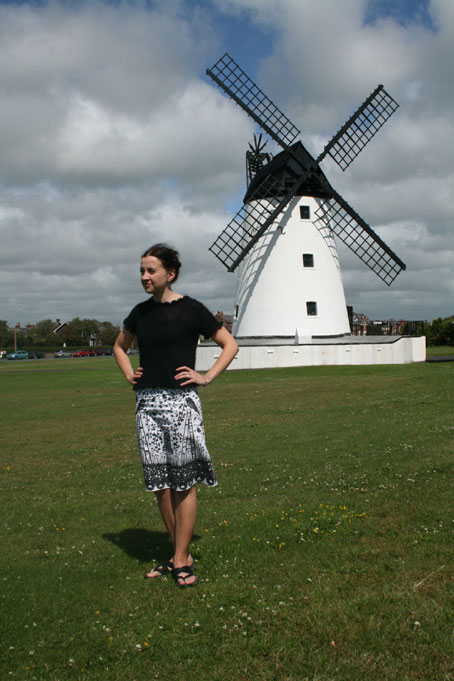 The building I am standing in front of, wearing its own black and white outfit, is, of course, the Lytham Windmill. Along with the Blackpool Tower, it is one of the Fylde’s iconic landmarks. You can go inside, peruse exhibits about milling and regional history, and chat to the nice folk from the Lytham Heritage Group, as we did yesterday. Here’s one more pic.