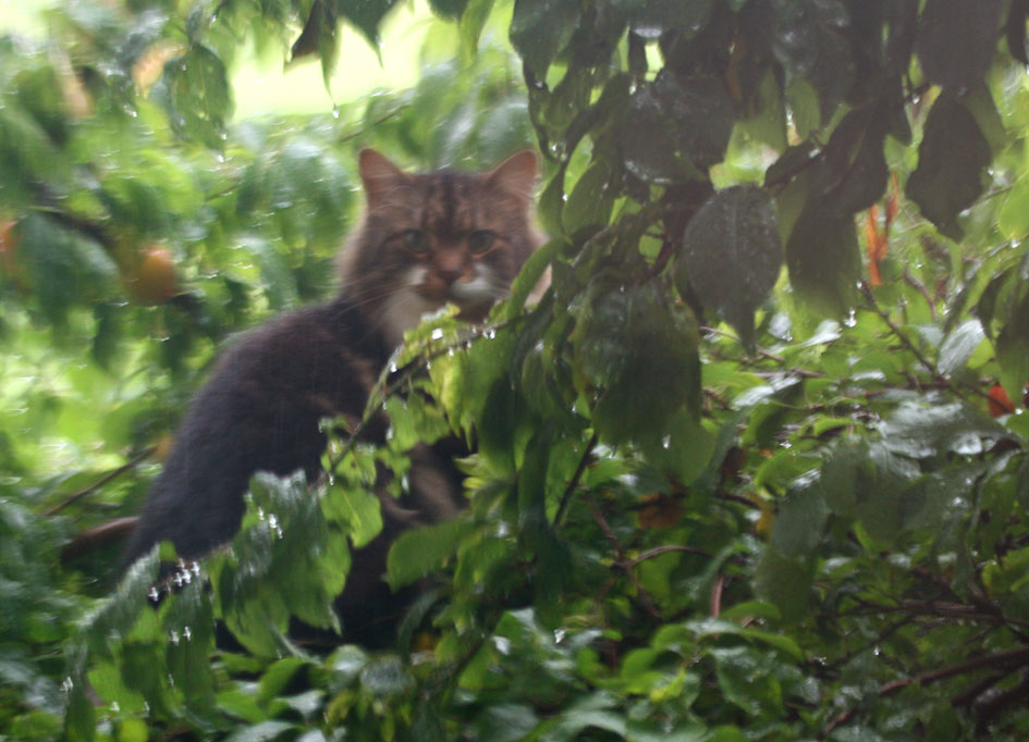 Our flat is on the second floor, and Jesus’ favourite way in is by climbing the plum tree and coming through the window. He seems to like drinking water off the leaves when it rains, and sometimes ventures far out into the tree to do this. He doesn’t like being watched, hence the surprised/ disgruntled expression.