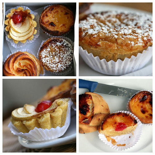 (you see here several varieties of pasteis — coconut, walnut, apple, almond– but the custards, pictured to the top right in the first photo, are my confirmed favourite)
