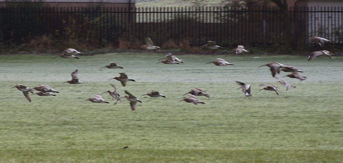 November is a gloomy month, and curlews are sometimes regarded as a gloomy bird, but I do enjoy seeing large numbers of them at this time of year, feeding in the field behind our flat (we live very near the estuary). I was hoping to add curlews to today’s owls, but this morning saw a heavy frost, and they were gone.