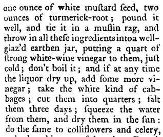 Recipe for Indian Pickle, from Susanna Macinver’s, Cookery and Pastry, as Taught in Edinburgh by Mrs Macinver (1784)