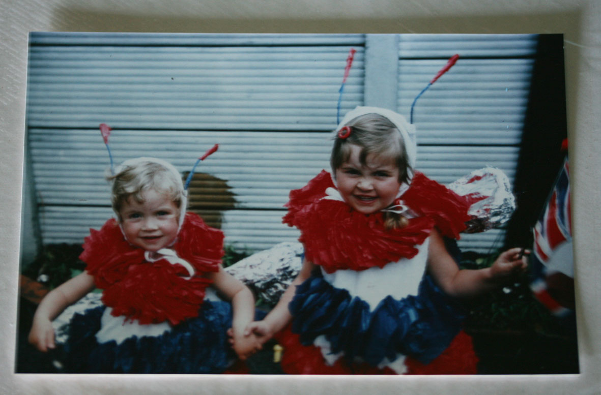 Just a quick post. After reading Lara’s comment about the Halloween Bee, and her sister’s ‘bee night’ (amazing!) I hope you will excuse my showing you this. Here are myself and my sister dressed as Jubilee Bees in 1977 (the year of Queen E’s silver jubilee). I am the bee on the right. Clearly this picture was taken prior to the rabid anti-monarchical feeling I developed in later life.