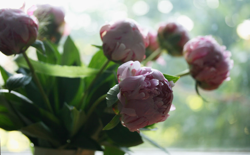 As you know, I am determined to get well and be mobile. This is different from “being positive” or “thinking positively”, because there appears to be no element of choice about it. In this context, determination seems to me to be a sort of basic – even desperate – will to life. I often found myself musing on this in the early, rather terrifying, days following the stroke when I couldn’t move at all. The way I felt then was philosophically similar to a character out of Beckett who “can’t go on” but “will go on.” Since then, the struggle to recover – and it is a struggle – seems to me to to be a sort of process of vacillation between those two points: between how much one ‘can’t’ go on and how much one ‘will.’ I’ve found that the only way to deal with recovery’s pendulum-swinging effect is, again, like a Beckett character – with resignation and with humour. And I mostly find myself on the ‘will’ side of the equation. But the bureaucracy of disability is, by necessity, focused entirely on the ‘can’t’. And tiredness not only heightens ones sense of incapabilty, but also – as one lies awake for the third night watching the inane antics of Mapp and Lucia – makes one weirdly self-absorbed and fearful. (At least, that’s what it does to me). Next week I am going to see the cardiologist to finalise plans to close up the hole in my heart. I am really looking forward to getting this sorted (at the moment I often feel like a sort of time bomb in which another stroke might occur) but obviously at some level I am worried about it too, because it has been preoccupying me during these stupid, sleepless nights. Overall, then, it has been a thoroughly rotten week, and the sole focus of this weekend is getting my sleep patterns back to ‘normal’. Tom will help me stay awake all day, and I shall knock myself out at night with a couple of jellies. I am hoping that two days of this will restore my Beckett-ian balance. Anyway despite being totally exhausted, many things are cheering, including these peonies that turned up from my colleagues at work. They are just coming out of the closed-fist stage, and I am really enjoying them.