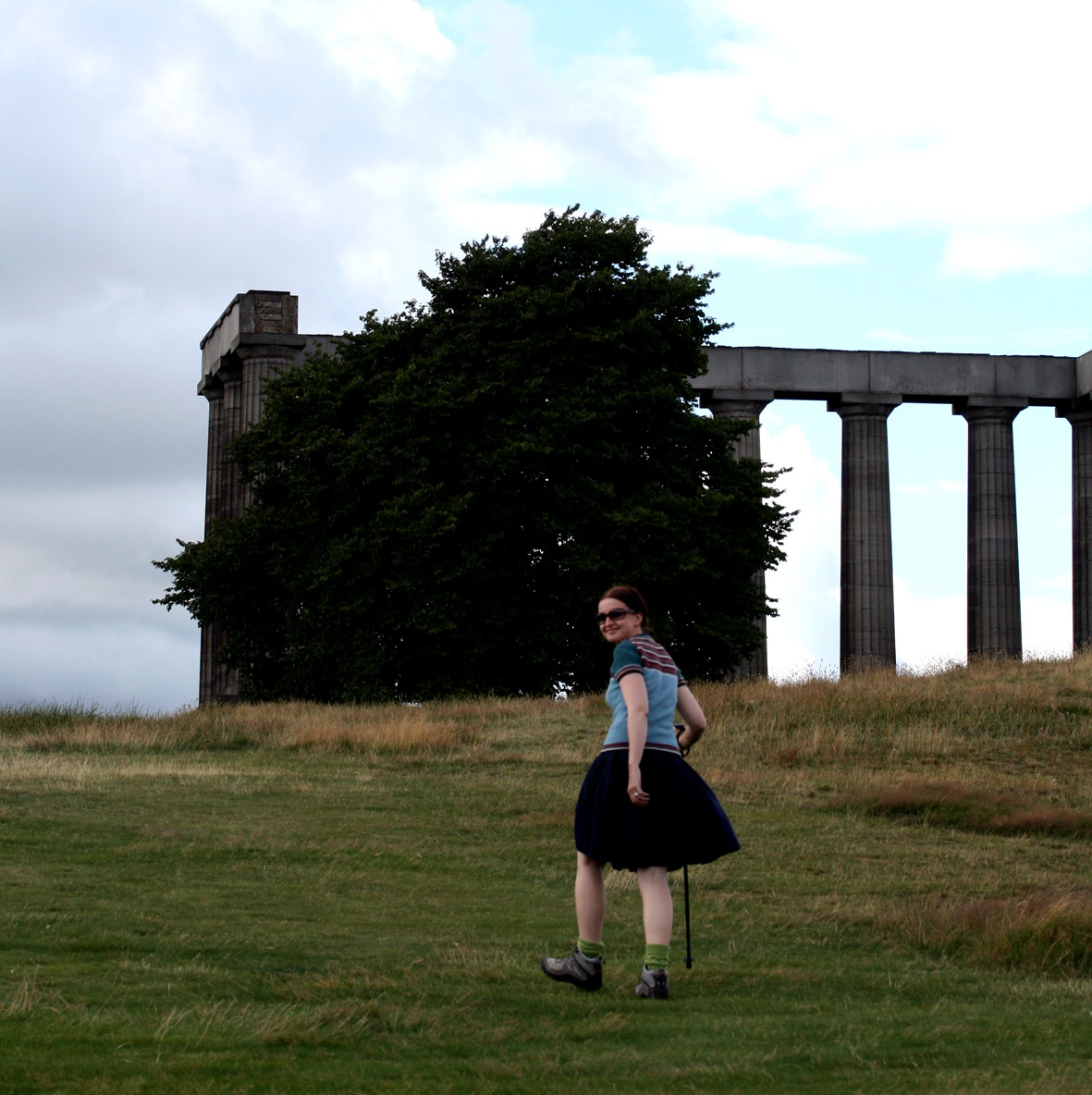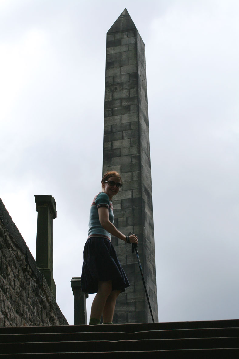 A couple of days of bed rest is enough for me. Now that the incision wound in my thigh is feeling less tender, it is time to crack on with my seven hills of Edinburgh project! You will recall that I’ve only managed one of these so far, but now the hole in my heart is closed, there will definitely be no stopping me. I’ve recently been fitted out with some new orthotics to correct my over-pronating ankle – the effect of the stroke on my left foot has been made worse by my naturally flat and weirdly large plates o’ meat – but these new orthotics really help. In fact, I have found that I can now walk about a little without using the leg brace, which is very pleasing. My brace may well be a miracle of carbon-fibre engineering, but I really hate clumping along with a big, black, cumbersome object strapped to my shin, so I decided to attempt Calton Hill without it. I’m still very unsteady on my feet, though, so I used one of the walking poles that Tom gave me for my birthday for added support.