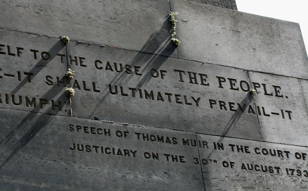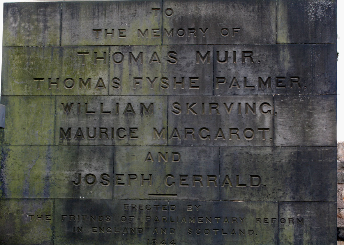 In Scotland, as elsewhere in Britain, one effect of the French Revolution was to unleash the forces of conservative reaction among supporters of the Government. In 1793 and 4, political repression came to a head in a series of Edinburgh show trials, whose purpose was to undercut and demoralise the burgeoning movement for parliamentary reform. With the assistance of a reactionary and corrupt judiciary, the Unitarian printer, Thomas Palmer, William Skirving, (the secretary of the Edinburgh Society of the Friends of the People) Maurice Margarot (member of the London Corresponding Society), Philadelphia lawyer, Joseph Gerrald, and, perhaps most famously, eloquent Scottish radical and advocate, Thomas Muir, were all convicted on spurious charges of sedition, and transported to Australia.**