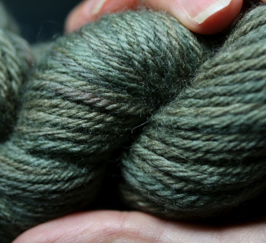 As you can see, the three green/grey shades seem quite tonally close. . . it is only when you examine the skeins and their slight variations that you see how different the colours are. For example, at a distance, the unwound skein on the far left, looks very similar to the one second from right, but their composition is not the same at all. Here, in two photos that are true to their actual colours, is second-from-right: