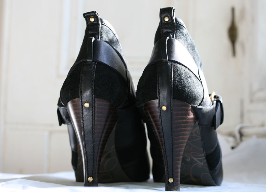 The bits of me that have been most obviously physically affected by the stroke are my leg and foot. I can mostly get about just fine, in a lopsided sort of fashion, but the ankle has no stability and the foot and lower leg have quite a limited range of movement. I have some great orthotics which stabilise the ankle, and with them I can now walk in a reasonable range of shoes that are entirely flat – any sort of raised heel sends me woefully off kilter. Now, I really feel very lucky to be able to walk at all, and, being a committed walker, appreciate the sturdy, reliable qualities of a good, comfortable shoe or boot. But I have many shoes in my wardrobe that do not fall into this category. Even the pair pictured above – whose virtues I celebrated in a couple of posts from Philadelphia last year – are now unwearable because of their unsupported sides against which my left ankle flops uselessly. If I can’t walk in those shoes, imagine the insurmountable challenge that is posed by these babies: