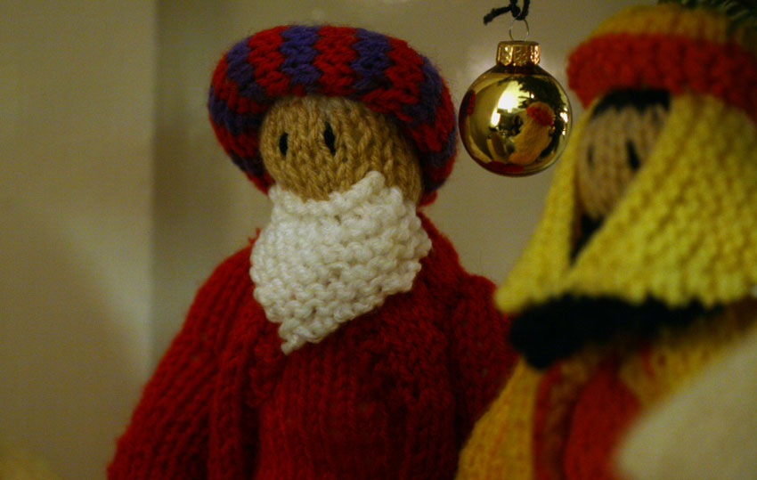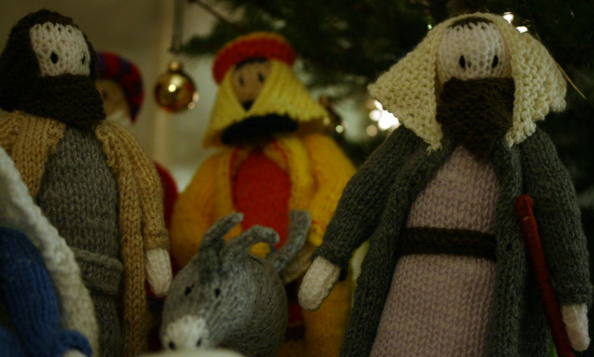 After raising a modest glass or two, we returned home to decorate our tree. One of my favourite things of the many lovely (and moving) items I received while I was in hospital was a nativity scene, knitted by Sister Winifred and the other nuns of Kersal Hill convent, Salford. (The scene’s donkey has his own entry in my correspondence archive here). Though we do not celebrate the season in a religious way at all, I am incredibly proud to have Sister Winifred’s knitted nativity in my living room this Christmas.