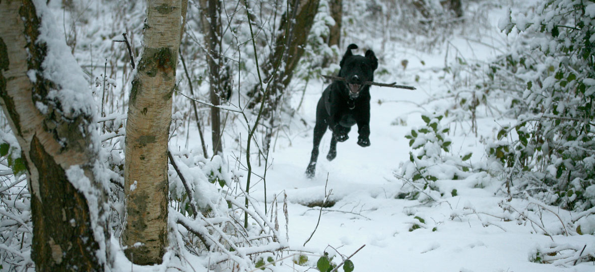 It has been a bit like the house of the undead here this week. Tom kept to his annual ironic tradition of returning from the conference of immunologists with an evil infection, and has been very ill all week with flu. I have not been much better myself (delirium actually set in at one point), but had perked up enough by Friday to be able to take on duties as principal tea-maker etc. The weather has made things a little tricky for us too, as the recent freeze / thaw / freeze pattern has made it much more difficult for me to get about (the pavements are largely clear, which means that I can’t wear my crampons, but smaller footpaths are strewn with deadly patches of ice upon which my left leg is liable to give way at any moment). While the rest of the UK seems heartily sick of the snow, I was actually grateful for a fresh fall today, as it meant I could at last put on my spikes and get out for a decent walk. Bruce’s affection for the snow also continues unabated.