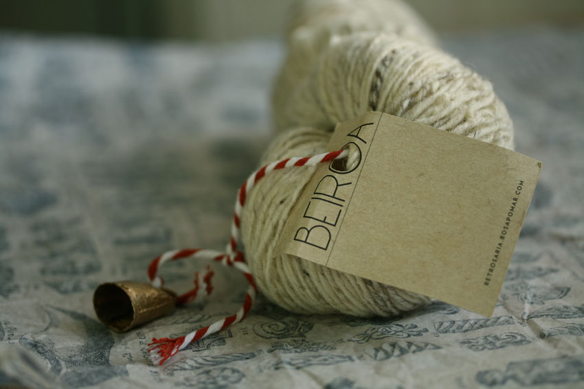 And last but not least is this beautiful Beiroa yarn from the wonderful Rosa Pomar. I really admire Rosa’s research into Portuguese textile traditions, and this yarn is the fruit of some of that work. The yarn is spun from the fleece of Bordaleira sheep, who live on the slopes of Portugal’s highest mountain range, the Serra da Estrela. These sheep are better known for their delicious cheese, but for many years, their wool has also been used to make woollen capes, which remind me very much of mauds, in the Scottish shepherding tradition. The wool of the Bordaleira sheep is as delicious as their cheese, and Rosa is now putting it to good use for hand-knitters. She soon hopes to produce more yarn from the coloured fleeces of this flock.