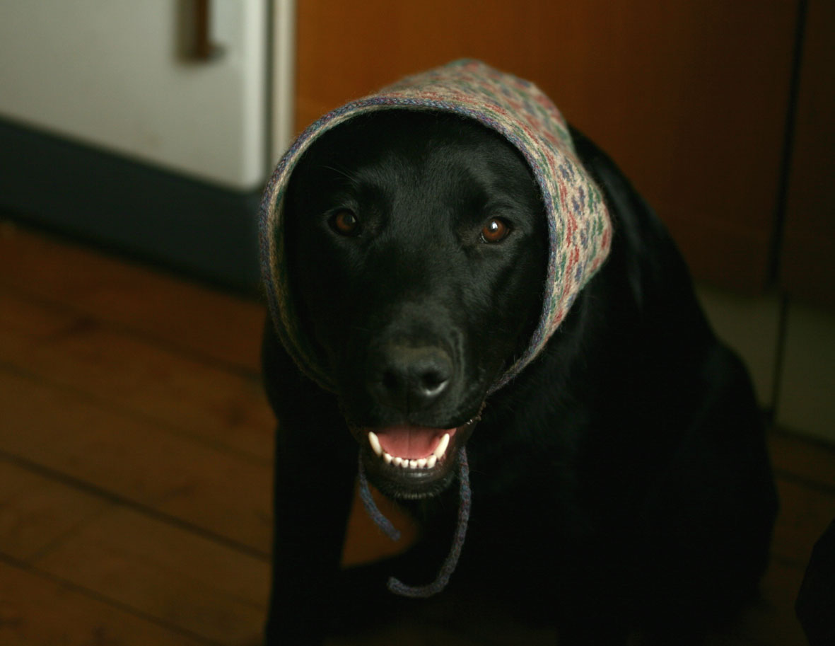 Advice from the knitting police: NEVER wear this heidscarf with its accompanying sweater.