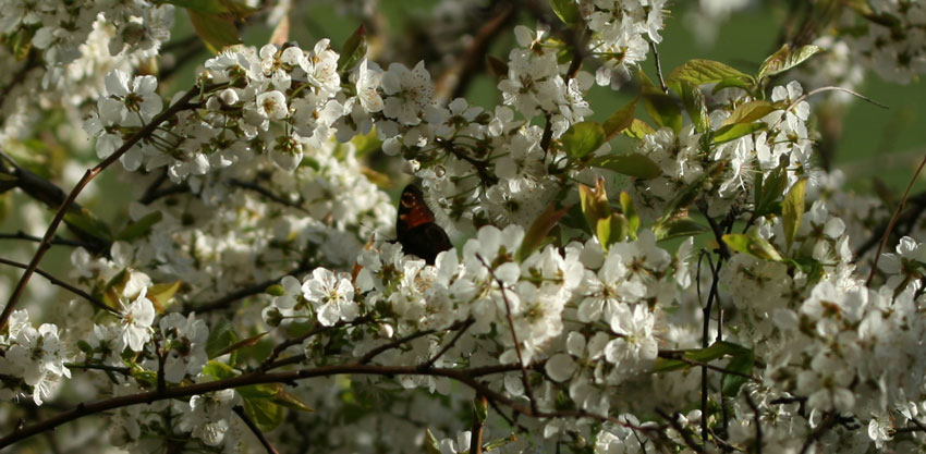 Surely one of the most satisfying things about any kind of journal keeping is the Gilbert White-like sense it can convey of seasonal continuity or change. At dusk yesterday, Jesus’s plum tree burst into bloom. I note that last year, after a particularly long and evil Winter, it had just started to flower on April 4th; in 2009, blossom had started to appear on March 23rd. I don’t know what the plum tree was doing in 2008 because I didn’t mention it. However, I do recall hailstones the size of golf balls at Durness – it certainly wasn’t plum blossom weather.