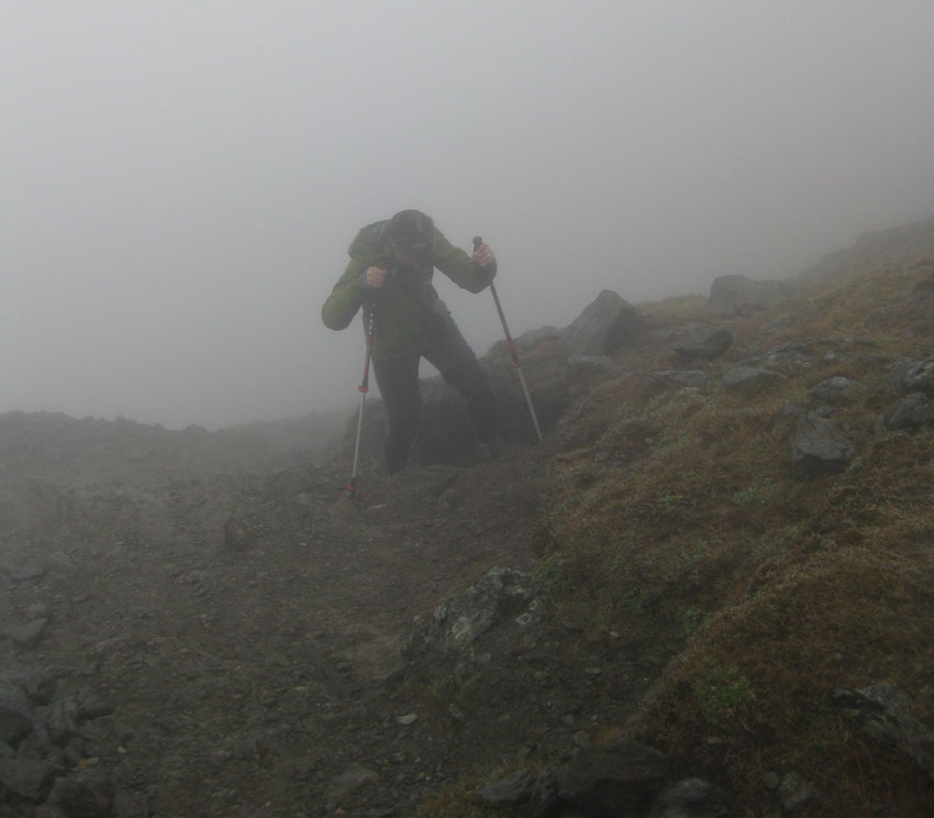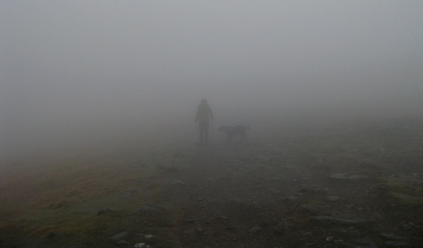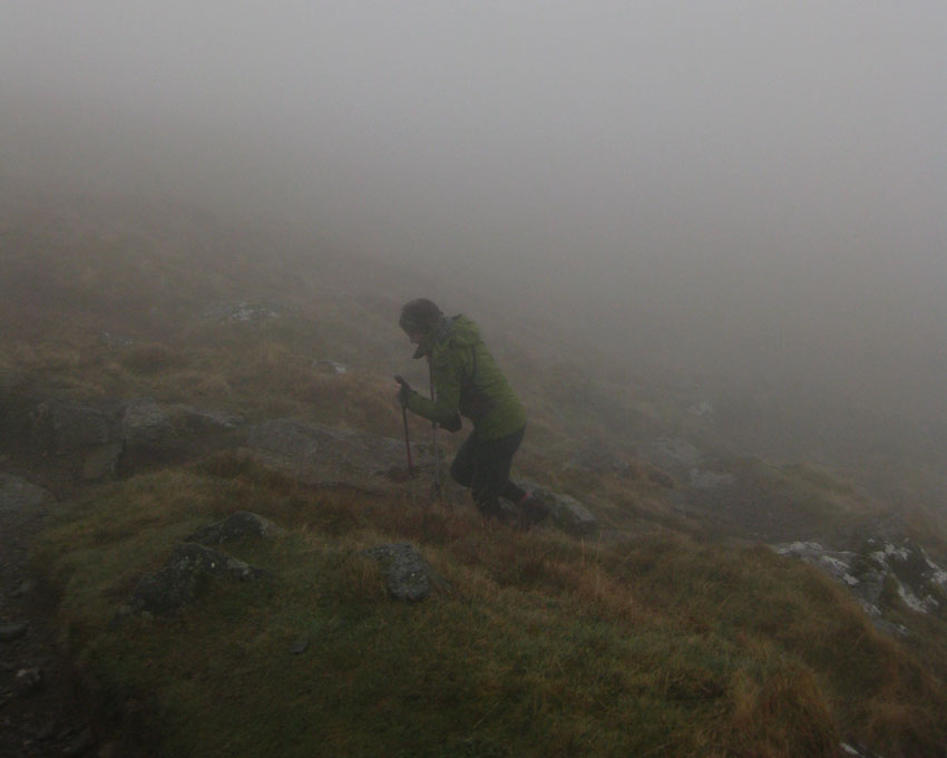 It got claggier and claggier the higher up we got. Bruce developed fearsome old-man’s eyebrows.