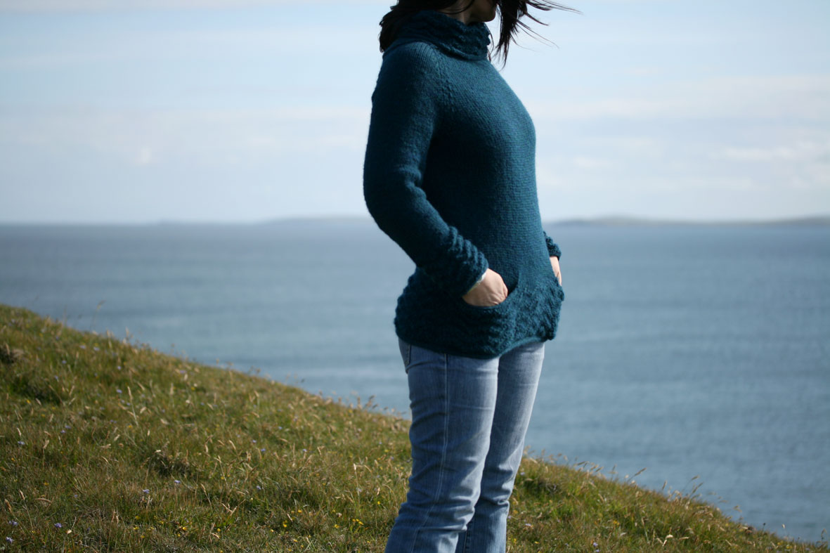 The post-stroke rollercoaster continues. Shetland came at a great time, as I am currently having to deal with yet more life-changing gubbins, namely the fact that I will probably never be able to do an academic job again. I have spent sixteen months trying my hardest to get better, but I now have to deal with the likelihood that working in a University will always be too much for me. Having spent two thirds of my life training to be an academic, and the other third being one, this really feels rather strange. But it is something I have to face, just like I have to face that I am now a slow, slightly lame, easily confused, and constantly tired person. Soon, it will be my birthday. The prospect of this would usually turn me into a total loon, but for the first time in my life I find that I am completely uninterested in it. I intend to ignore this event, and am focusing my energies on things I actually can do. I shall get Warriston out by the end of the week. Mel’s version (which made me want to knit myself a deep blue sweater immediately) gives a very good sense of the fit of the final pattern (which I have made ever-so-slightly less baggy than my prototype).