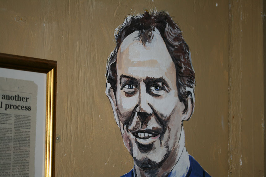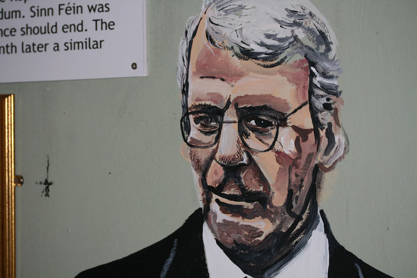 I confess that we ended up here because it was a very rainy day, and the entrance price included a cup of tea (a genius touch), but the place was an unexpected delight. It is hard to explain exactly why the Doagh Famine Village is so good without spoiling its many surprises . . . but I do recommend a visit if you are ever on the Inishowen Peninsula (which is, by the way, a lovely spot). I would describe Doagh as an ‘attraction’ whose ostensible purpose is to celebrate the culture and resourcefulness of the people of Northern Donegal. It succeeds in this aim admirably, but what makes it all the more interesting is the way that the ‘village’ has expanded beyond its original remit (and boundaries) in an enthusiastic attempt to represent All Irish History and Culture at All Times . . Ever. This, of course, is a totally impossible task, but it is a laudable one, and the way history is presented is actually refreshingly original when compared to many official (ie, publicly funded) ‘heritage’ attractions. I think what I really liked about Doagh was that it had a Point of View and it wasn’t afraid to make it. Where else could you find a display about absentee eighteenth-century English landlords tellingly juxtaposed with a critique of the apricot-coloured holiday mansions that one sees everywhere in Donegal? At times, these idiosyncrasies do tip over into the faintly absurd – nowhere more so than in what I can only describe as The Peace Process House of Fun. Here, the unsuspecting visitor suppresses their claustrophobia and navigates their way around a republican safe house, locating several ‘hidden’ rooms, until they find Ian Paisley and Jerry Adams sitting down together. I couldn’t quite believe it was real . . . but it really was. Curiously, Tom and I seemed to be the only ones who found the discovery of former prime-ministers behind fireplaces and wardrobes hysteria-inducing . . .