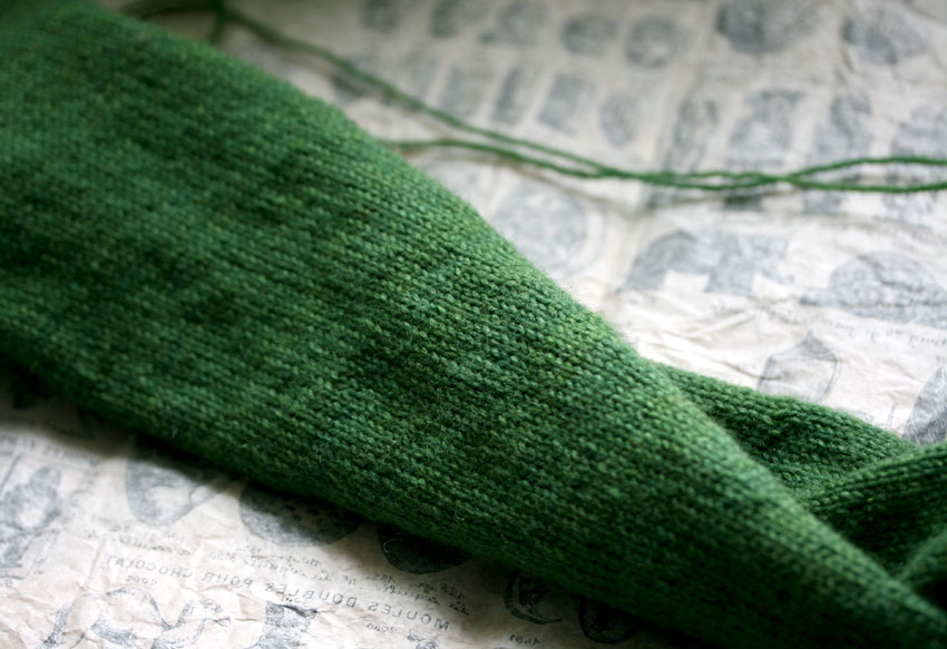 That is a whole green sleeve. And I am actually looking forward to the other one (unusual, for sleeves). Clearly I have a thing for green cardigans, as this is the third I’ve knit in as many years . . but they are all very different designs, as well as very different greens.