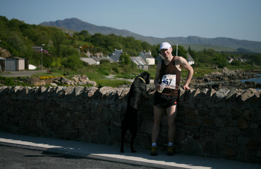 Obviously there are no pictures of our joint journey back into Craighouse, as we were both otherwise engaged (he on foot, me on wheels). The race was really tough in the heat, but Tom completed it in 4 hours 28 minutes – his best time yet! I was also very happy to complete my own mini-challenge, and happily without attendant bog-water, blood, and bruises.