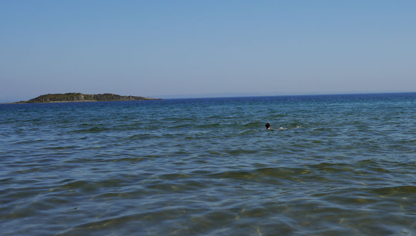 The third element of our Jura triathlon was, of course . . . swimming! It is not often that one gets a chance to do this in the sea off the Hebrides, and for me it was an opportunity not to be missed, even without a proper costume.