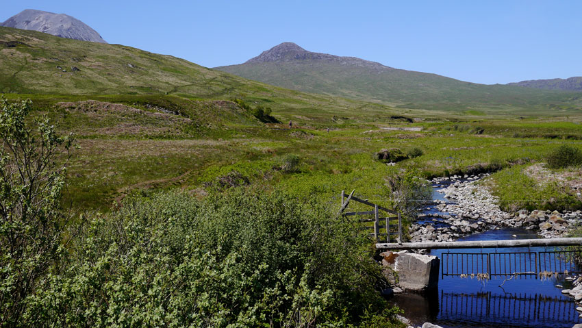 To those of you who aren’t hill runners, this event will probably seem pretty bonkers. It involves seven hills, eight thousand feet of ascent, and sixteen miles over some really challenging terrain – bog, boulder fields and rough quartzite scree. But if you have been to Jura, you’ll see why Tom and so many other runners return year after year: the Paps are truly fabulous hills – the sort that demand you to get out and about in them (I climbed them once myself 6 or 7 years ago, but they would definitely be too much for me in my present circumstances). They dominate the landscape of this part of the Hebrides to the extent that it is hard to take a photograph without them looming large and pap-like somewhere on the horizon.