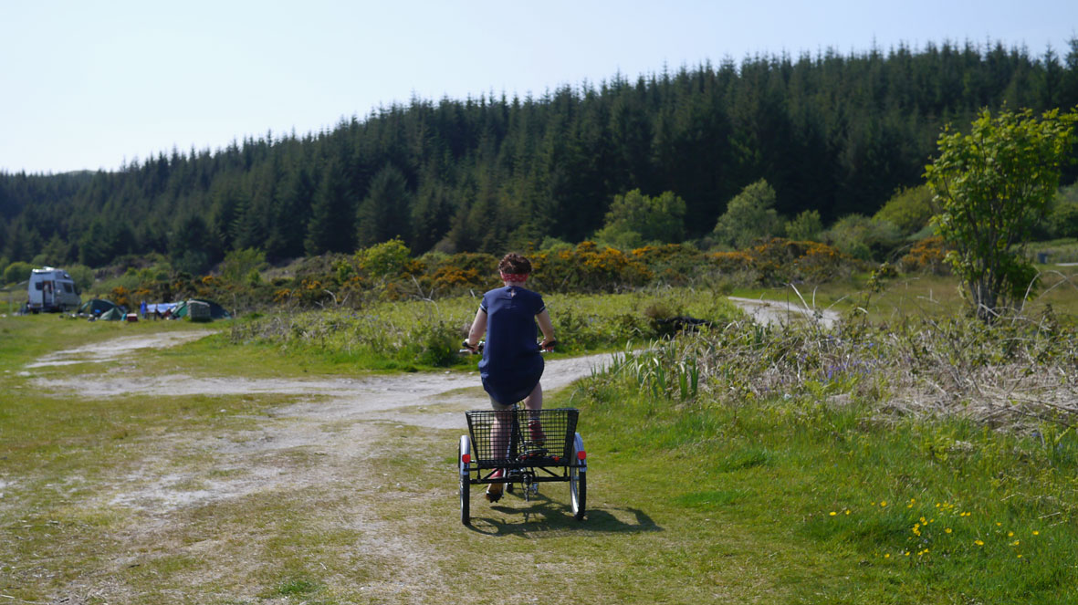 While Tom was away facing the Paps, I had my own (small) challenge to complete. For the past month or so, I have been practising my tricycling with the aim of being strong (and safe) enough to pootle on the road up to Three-Arch Bridge to see Tom come down from the hills toward the end of the race, and then cycle back with him to the finish line at Craighouse. This is a round trip of six and a half miles on three wheels – nothing in comparison to the task Tom was engaged upon, but certainly an undertaking for someone whose wonky left side is still suffering the after-effects of a stroke and hemiplegia.