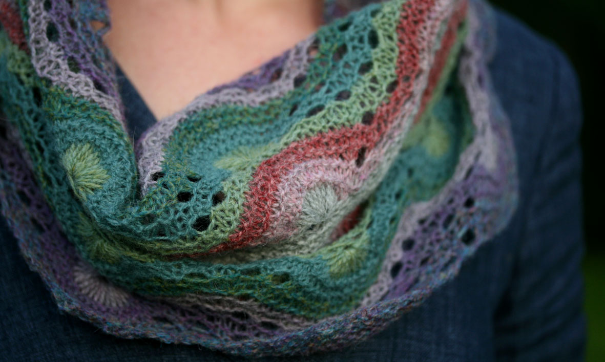 Anyway, I’ll have a few kits in this colourway with me at Woolfest (each kit contains enough to make a large and a small cowl if you are so inclined). I’ll also have kits for Sheep Heid , Rams and Yowes, Tír Chonaill, and the Sheep Carousel. I’ve been receiving a number of emails and tweets about the availability of the latter: if you are coming to Woolfest, I’m going to do my best to ensure there are enough kits to go round, and I’m also making arrangements for postal and overseas orders. More of this anon.
