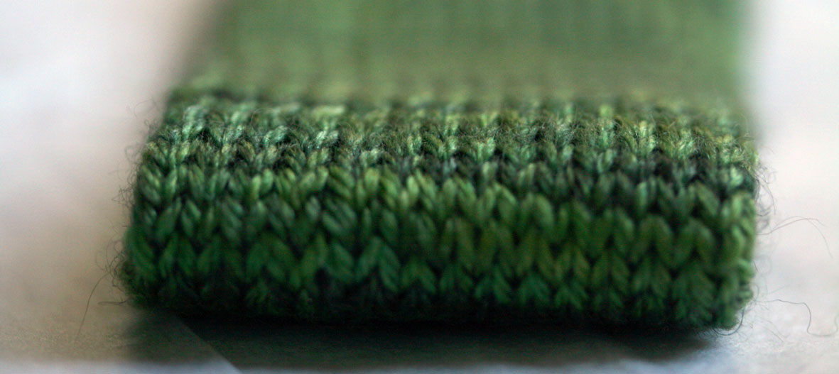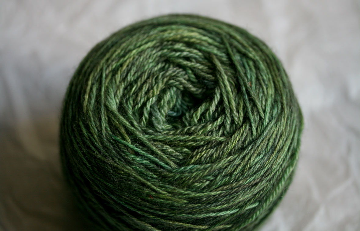 I am using Fyberspates Rural Charm (70% Bluefaced Leicester 20% Silk & 10% Cashmere) in shade “Forest,” a birthday gift from Jen and Nic (thanks, ladies). This deliciously luxe, and slightly variegated yarn is quite unlike anything I’ve been knitting with recently, and I absolutely love it. It is soft and smooth in the hand, with an amazing sheen, but the high proportion of Blueface Leicester means that it also springs up with a little bit of steam – the stitches bloom and puff out to fill their available space in a most pleasing manner. The ‘forest’ colourway is a beautifully complex green, with some dark undernotes and a lot of Autumnal gold in the finish. . this is beginning to sound like a whisky tasting . . . in any case, it is a very tasty skein indeed, and I’m looking forward to my next clue, so that I can continue working with it.