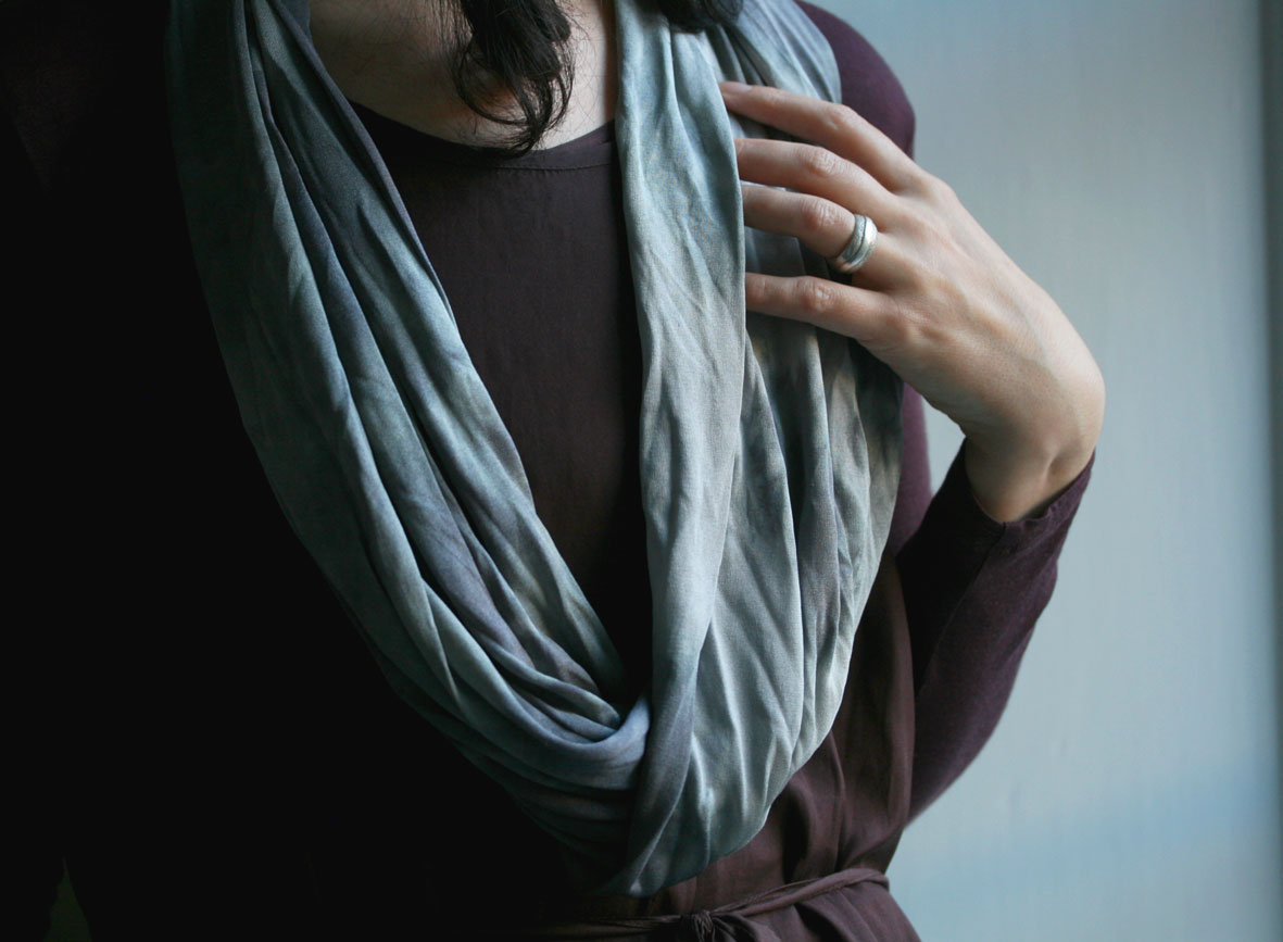 Sarah’s silk-jersey accessories feel more like jewellery than scarves to me. Precious and liminal, their wave-inspired and deliciously fluid fabric seems to emerge from a space somewhere between land and water. I couldn’t leave without one.