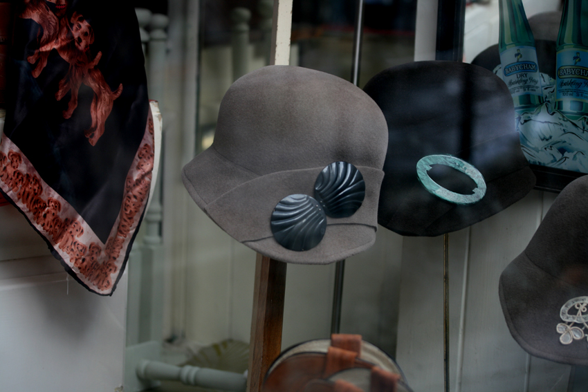 On Catherine Hill, there are several fabulous vintage stores, selling niche and carefully curated garments and objects. I love this selection of cloches . . .