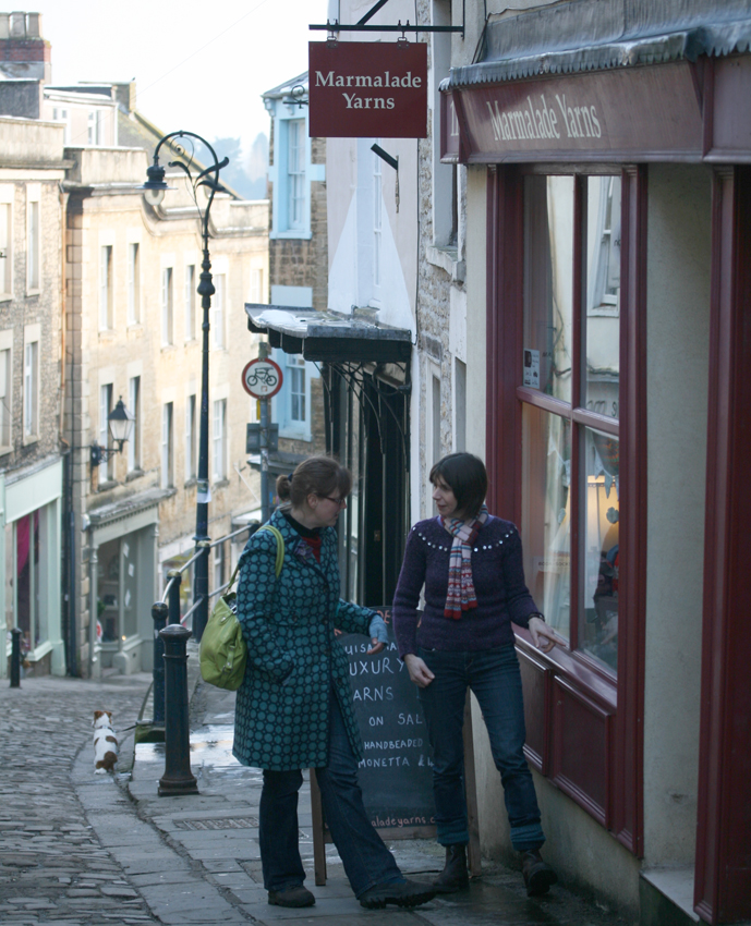 (Jen and Catriona outside Marmalade Yarns. Yes, Catriona is wearing an o w l sweater!)