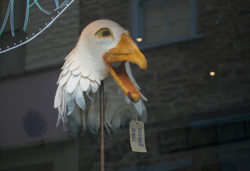 (This needle-felted Seagull mask was one of an incredible collection in a shop called OWL. )