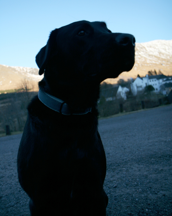 At Bridge of Orchy it became very cold. I am often told that I have a nice thick coat, but although this is true, I do not have extra woolly clothes and fluffy bags to keep me warm in Extreme Highland Conditions. The humans have these things, and though they were cold, they were not as cold as I. Then a very exciting thing happened. Because I was cold, I was allowed to get on the hunky bunk with the humans for the first time ever! It was cold on the floor, but it was warm on the hunky bunk with three of us, and so we all slept there together! This was very good. All I can say is, now I know just how good it is on the hunky bunk, I shall definitely expect to sleep there at all times. I shall ignore all human mutterings of “this is not a precedent” and suchlike — YES! ITS THE HUNKY BUNK FOR ME!!