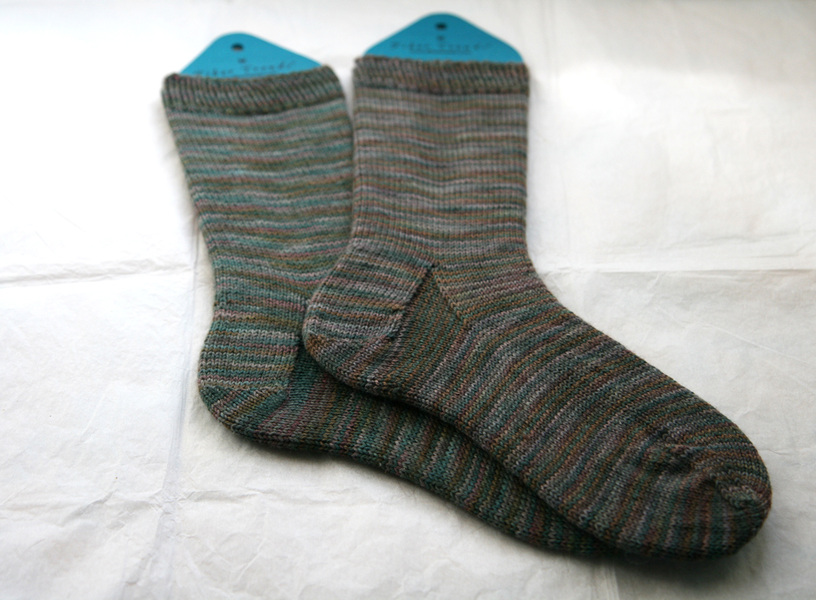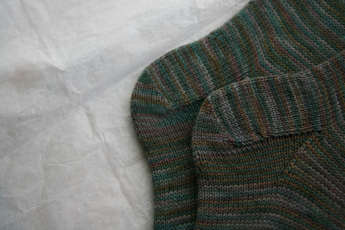 The thing is, that however rubbish I am feeling, I cannot stop making stuff. I might have felt totally crappy last week (you know things are bad when getting dressed marks the day’s first insurmountable hurdle) but I still turned out a sweater and this pair of socks. The experience of grafting the sock’s last stitch, or of putting the sweater in to block, probably represents accomplishment at its most basic, but I can tell you that such experiences have saved me from some very black places when I’ve been at my worst.