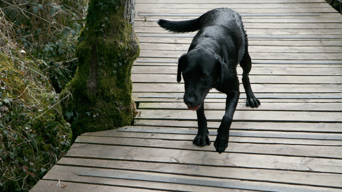 Now, I know and understand many human words — egg and chicken, for example, are two words that make a lot of sense to me. But two words that do not make sense are the words called Monkey Walking, which is what the humans shout at me with glee when I do this on a path with gaps in it: