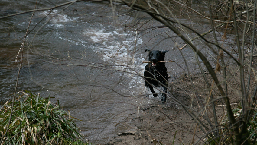 Up along the river banks and woods, there is much fun walking to be had. I smelt many interesting smells and went for a swim . . .