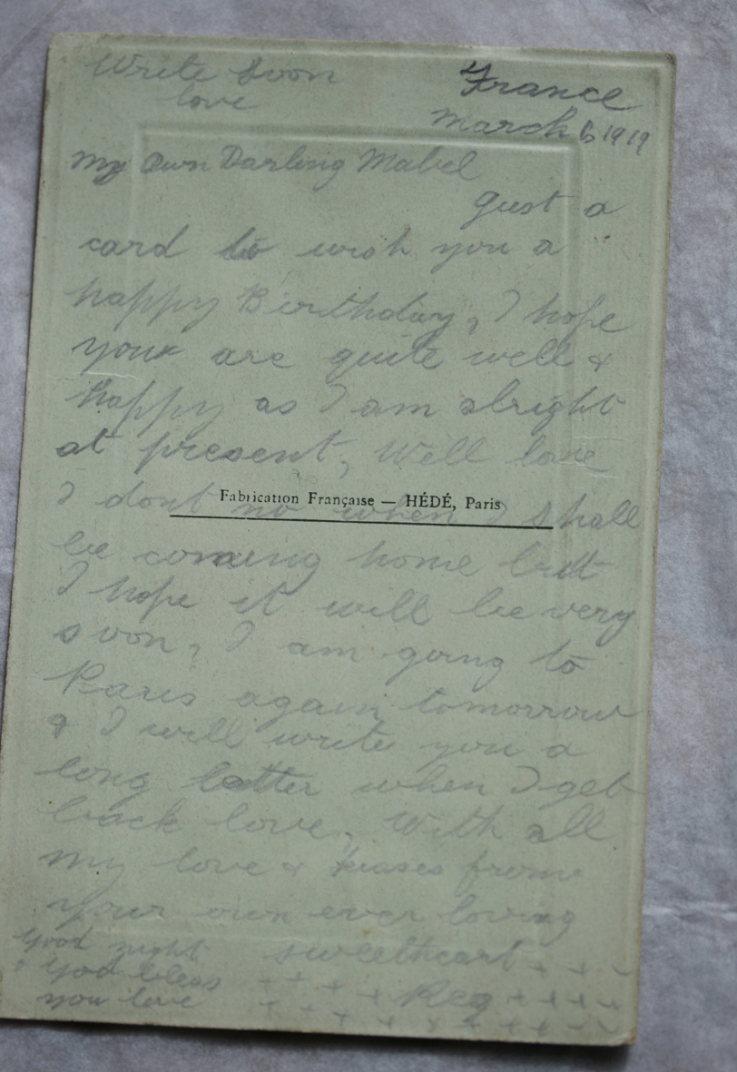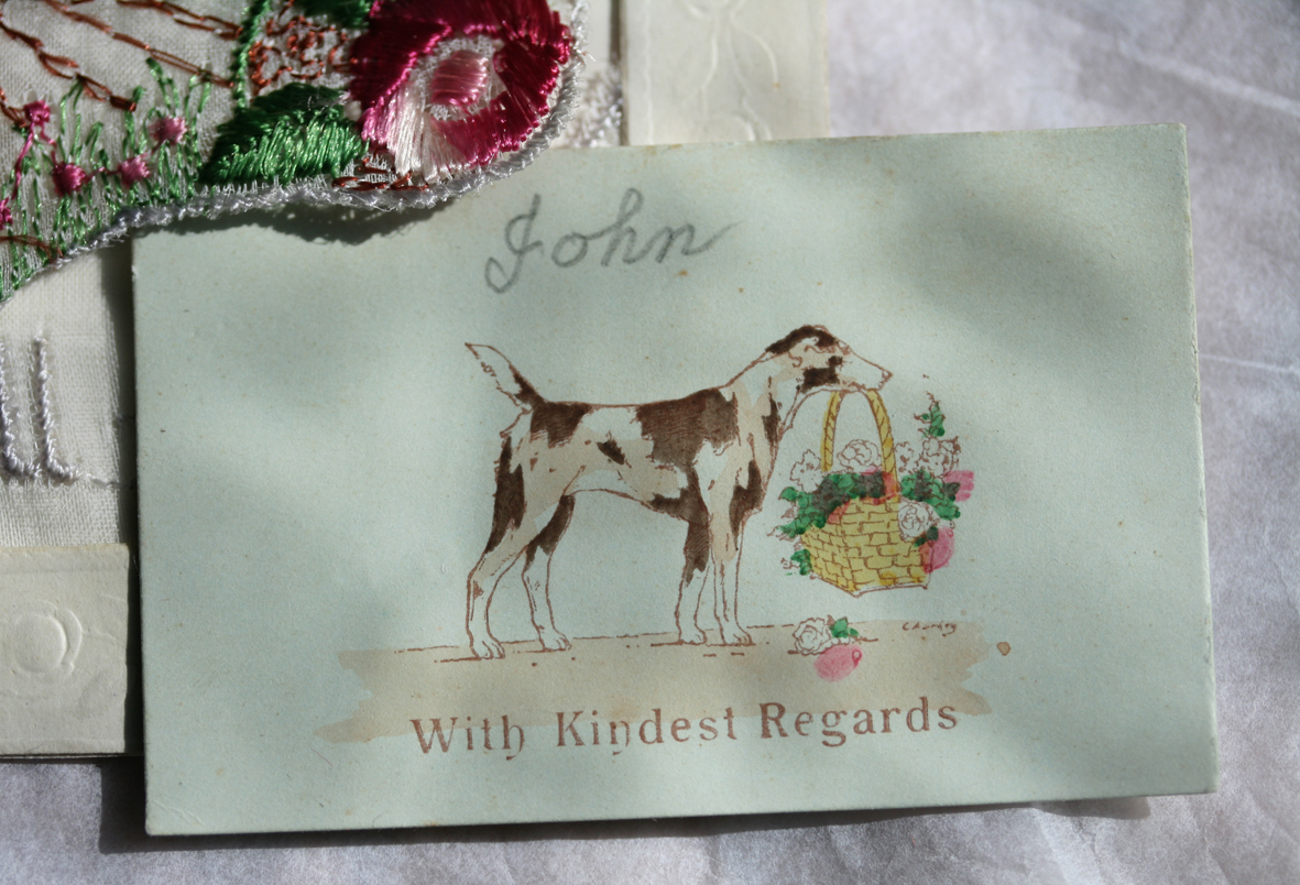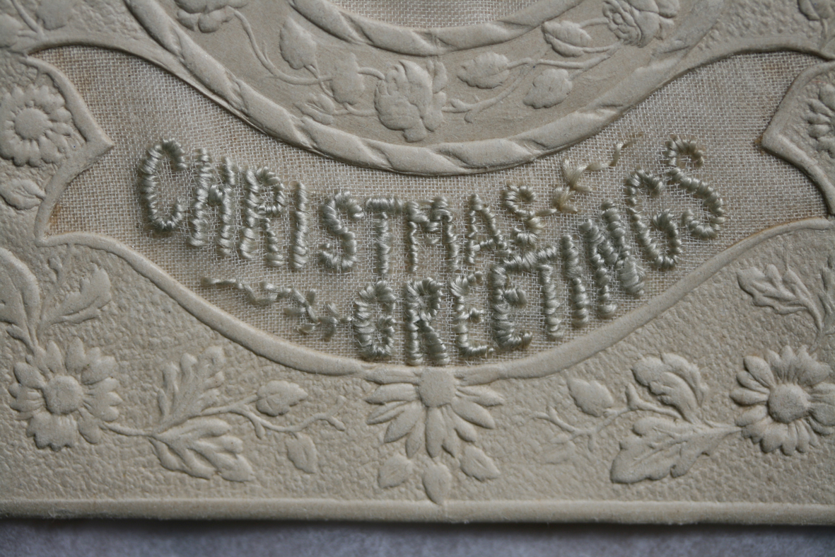 I so enjoyed your translations and comments on this post, that I thought I’d continue the First World War theme with some of my favourite items in my postcard collection. Known to collectors generically as “silks”, these machine-embroidered cards first appeared around 1900, and were produced in vast quantities during the twentieth century’s first two decades. As an attractive and eminently portable form of sentimental greeting, these cards proved particular popular among British troops serving in France. Some estimates suggest that, in their wartime heyday, more than ten million were produced.