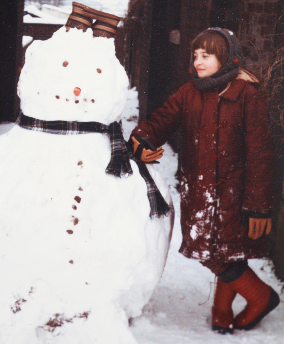In this photo, I am wearing a sort of snood-y balaclava thing knitted by Grandma, and a quilted coat sewn by my mum.