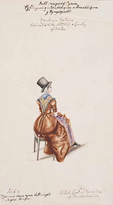 Augusta Hall, “Welsh Girl in the Costume of Pembrokeshire” in Cambrian Costume, Dedicated to the Nobility and Gentry of Wales (1834)
