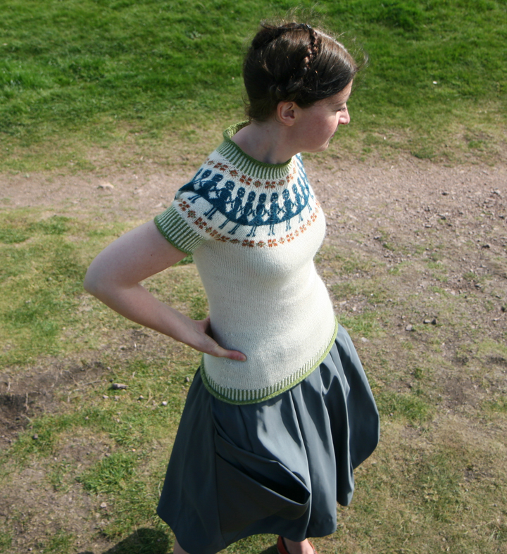 As well as changing the yarn recommendation, I’ve made a few alterations to the pattern. It is now nicely formatted as an eight-page booklet or ebook, which includes the (complementary) pattern for the Dollheid tam (so if you have previously purchased the Paper Dolls pattern on Ravelry, you’ll receive the Dollheid pattern as a free update). There are a few other improvements too, including clearer charts, a detailed sizing table, and a lovely hand-drawn schematic produced for me by Felix . . .