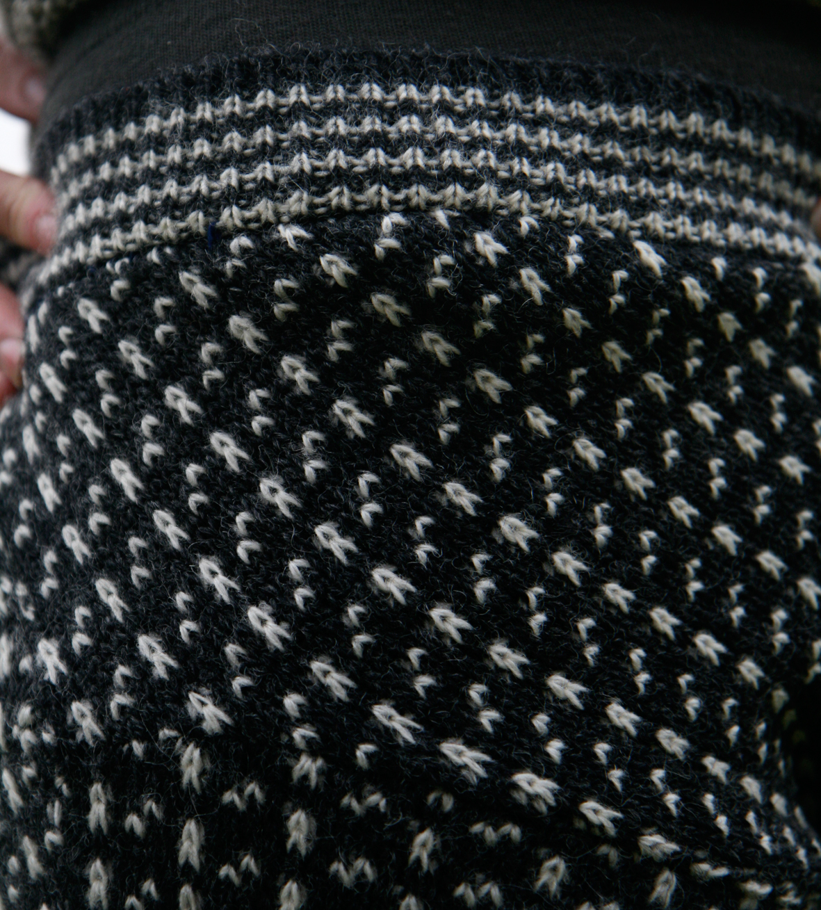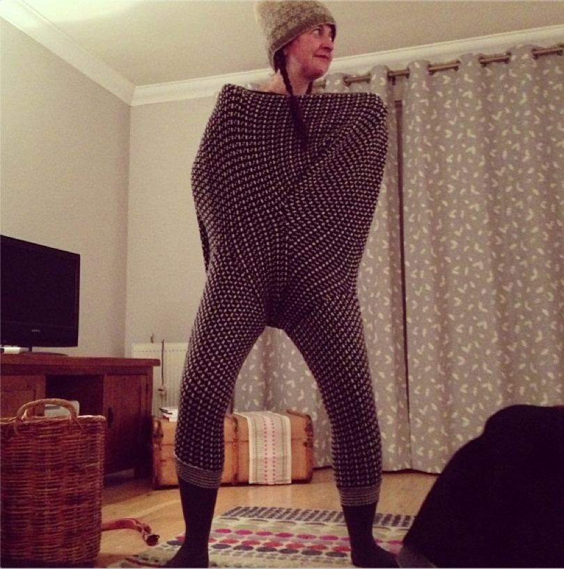 Now, I know swants (or sweeks) seem to arouse strong negative feelings among some knitters. I’m really not sure whether this is about the general look of the garment or about the fact that they repurpose old jumpers. If the former, I honestly don’t care if you think I look like an arse. I may well think that what you wear makes you look like an arse as well, but I would definitely applaud your individual style, and totally defend your right to wear whatever you fancied. And if the latter, I have to say that to me, salvaging a worn jumper, and giving it a new life, is a laudable crafty enterprise no different from repurposing old shirts in a quilt, or indeed what innovative Shetlander Wendy Inkster does with her world-famous Burra Bears. I have been wanting to make a pair of swants because I very much admire Stephen’s vim and brio . . . but also because I find myself mildly obsessed with these, but refuse to shell out £90.