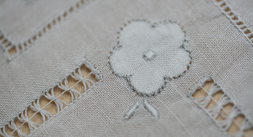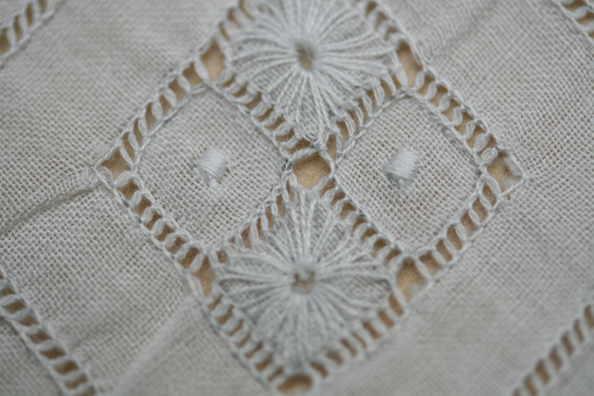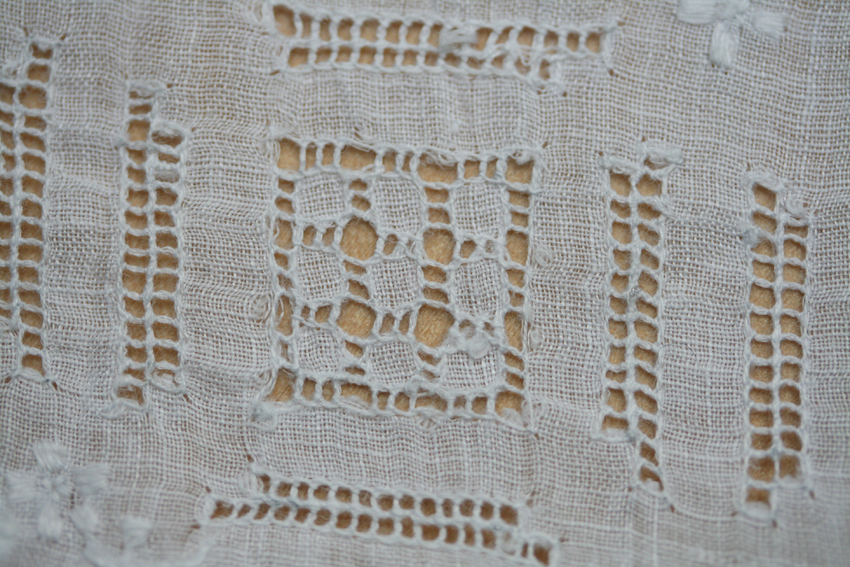 This lovely example of whitework and drawn thread work is the oldest handkerchief I own.