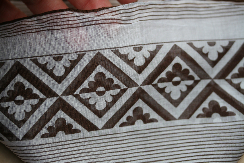 For some reason this one is my favourite for actual nose blowing: I like its 1960s brown; its tesselated design, and it also has a really high thread count, which makes it very soft.