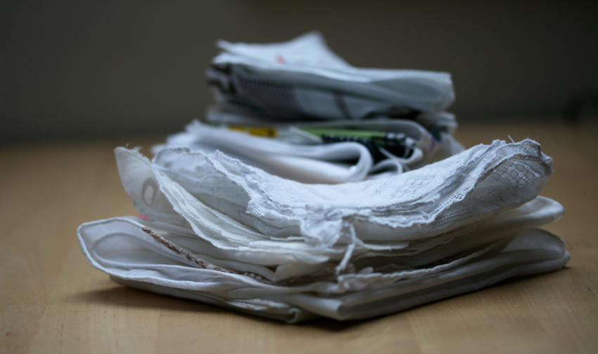I have a terrible cold. When one is sniffling and snuffling and generally feeling lousy, there’s nothing more comforting than a nice handkerchief, of which, it occurred to me this morning, I possess quite a few. So I took some photographs of the ones that aren’t in use or in the wash.