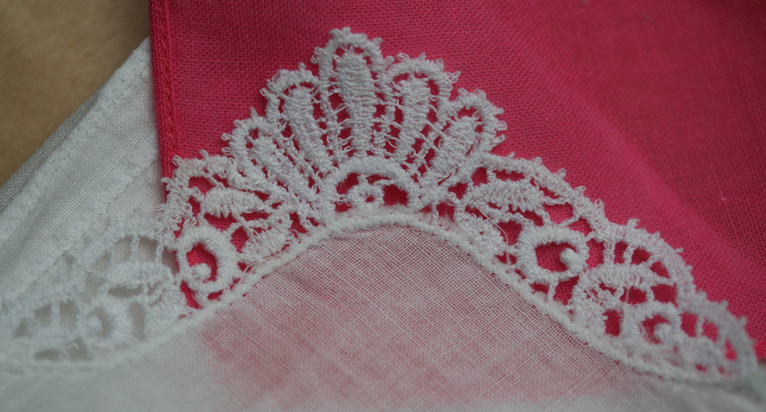 I have a few nice examples where the corners are edged with lace