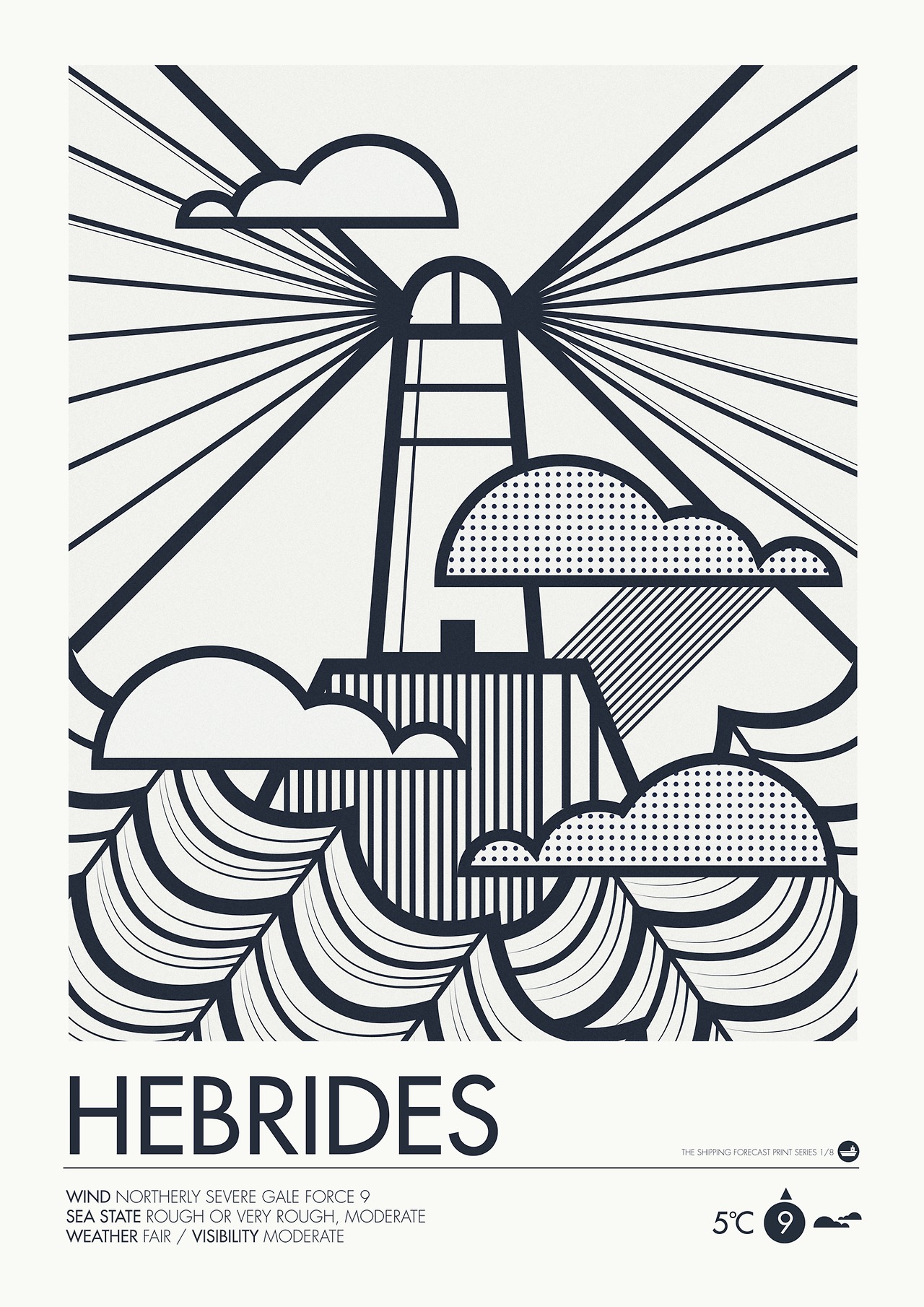 This is one of Neil Stevens’ amazing shipping forecast prints and I love it so much I just had to show you. If you are unaware of it, the UK shipping forecast is broadcast twice daily on BBC radio. Its detailed meteorological information acts as a lifeline to vessels planning their routes around these shores, but also provides (to anyone who is awake to hear it) an incredibly evocative litany of Britain’s liminal spaces. “This set of prints,” says Neil, “has been inspired by those midnight broadcasts with their unique language, unusual regional names and phrases.” Two beautifully produced Fair Isle and Hebrides prints have just turned up here today and I am very much looking forward to hanging them on my wall. See the rest of the series here.