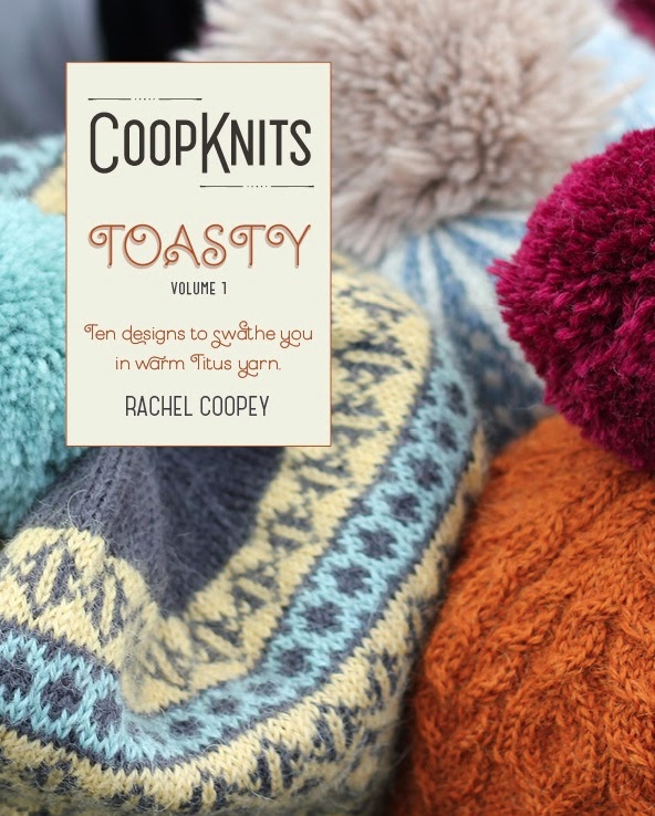 Toasty (I keep wanting to say Tasty) has just been published by lovely Rachel Coopey. It is a book of ten accessory designs: 6 hats, a pair of mitts, a pair of mittens, a scarf and a cowl. All the designs are knit up in baa ram ewe‘s Titus – a yarn of which I am inordinately fond, and which Rachel has used to superb effect in her designs in this book.