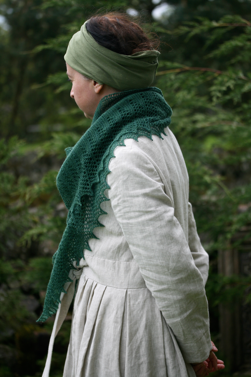 I like a green that is a muted, not too bright, sort of jade with a bit of gray. Wait! My name isn’t Harriet, it’s Ruth. I also like summer shawls to be shallow and long to wrap or just hang long. I guess I’ll have to knit one myself. Already ordered the pattern. Two weeks is about enough time to finish the project on my needles now. Thank you for designing the pattern! I think it’s perfect!