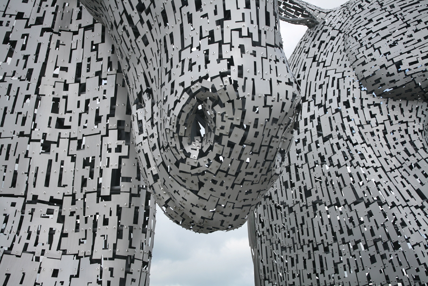 The Kelpies stand over 30 metres high, and are certainly majestic. Yet to me, it is not their size, but Scott’s very precise sense of detail and characterisation that impresses most: the flared nostrils, the flickering ears, the individual muscularity and movement. Detail at this scale somehow lends these monumental objects an immediacy that is deeply emotive.