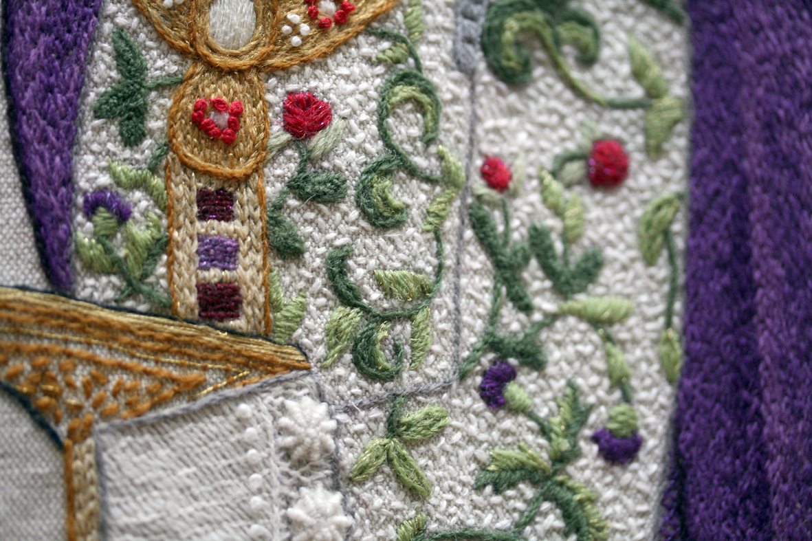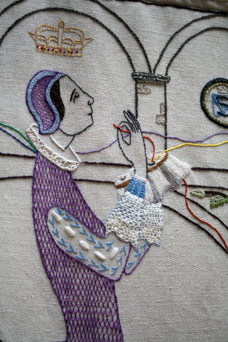 Panel 47: King James Bible The stitching of James IV’s jacket is incredibly beautiful, so minute, so precise – a perfect representation, in all respects, of seventeenth-century crewel work.